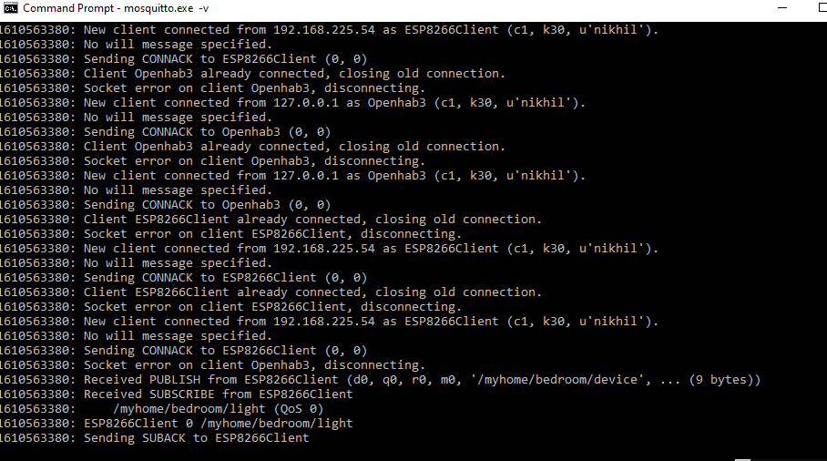 My Moquitto broker terminal: