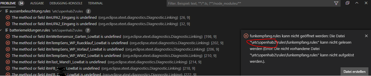 If the problems tab is looking for something at \etc\openhab2\rules no wonder it is going to fail.