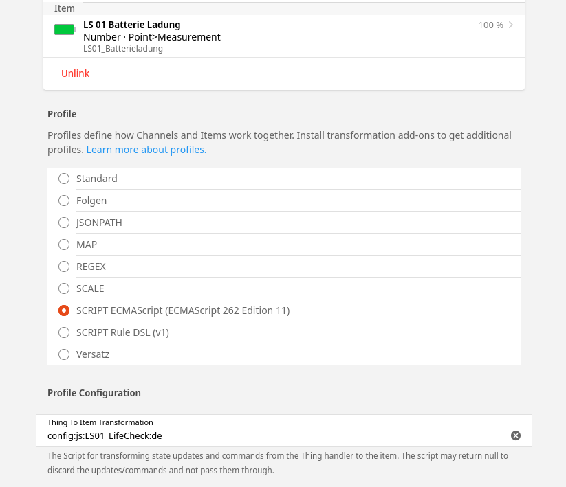 For setting the “life” switch item I use profil js SCRIPT in the channel config.