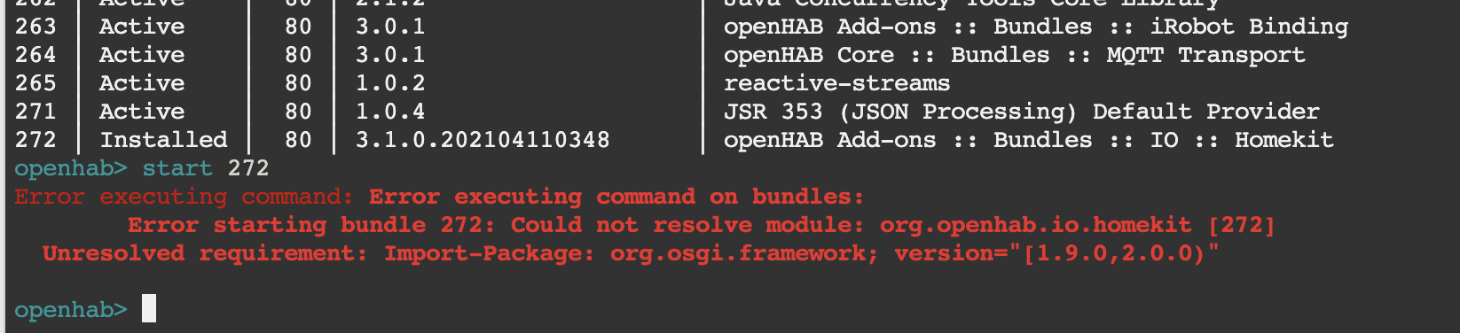 Using ‘list | grep -i homekit’, it shows that the latest snapshot is installed.