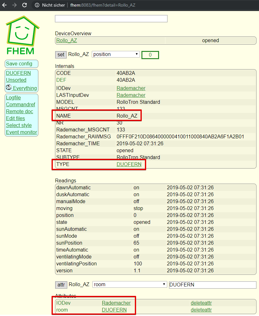 Letâs assume âShutter1â to be a Rolltotron configured as before and functionning under FHEM.
