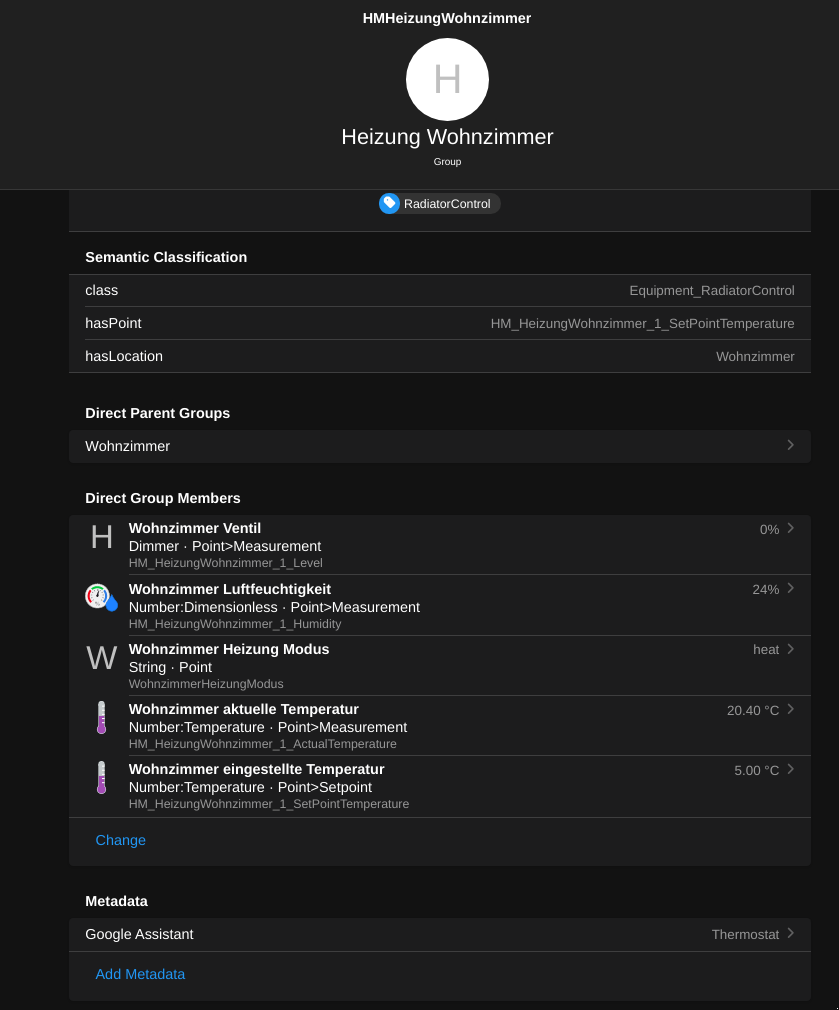 Now I started removing the old tags and old groups and added the new Google Assistant tags to the equipment and childs. I started with my radiators (switched and lights still use the old tags).