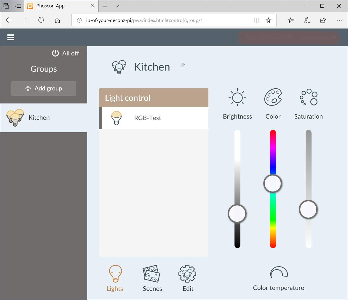 Attach some light(s) to the Deconz. Check, if you can control your lights from within this web app: