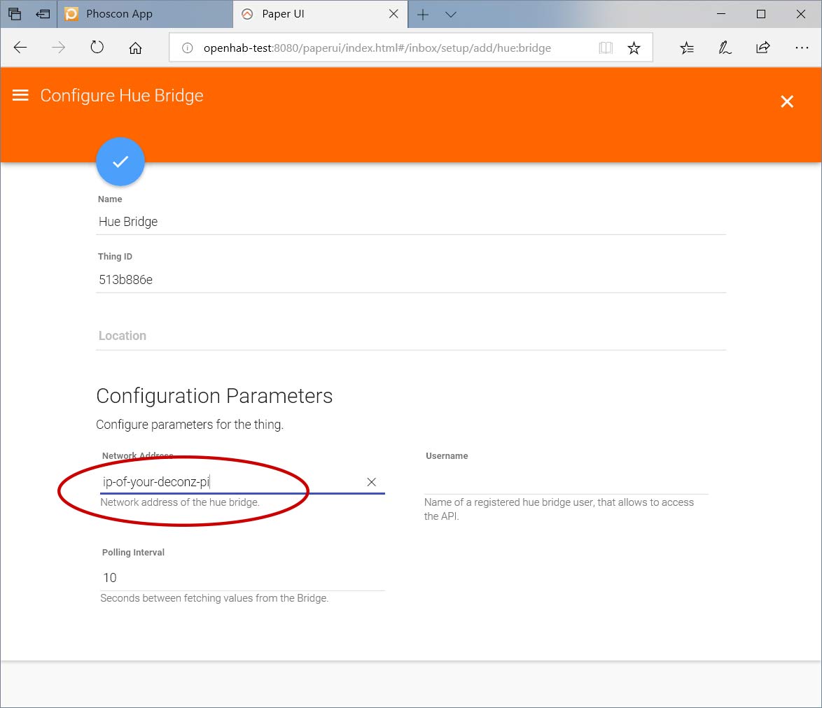 (assuming, you have installed Raspbee/Deconz as written above and have a openHAB instance running somewhere else)
