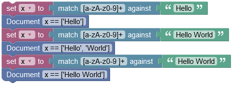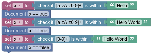 Collection of simple blocks that perform typical regex functions. Is under the Library Regex Tools