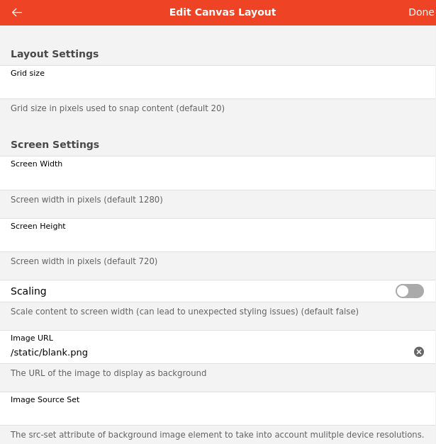 config of page canvas: