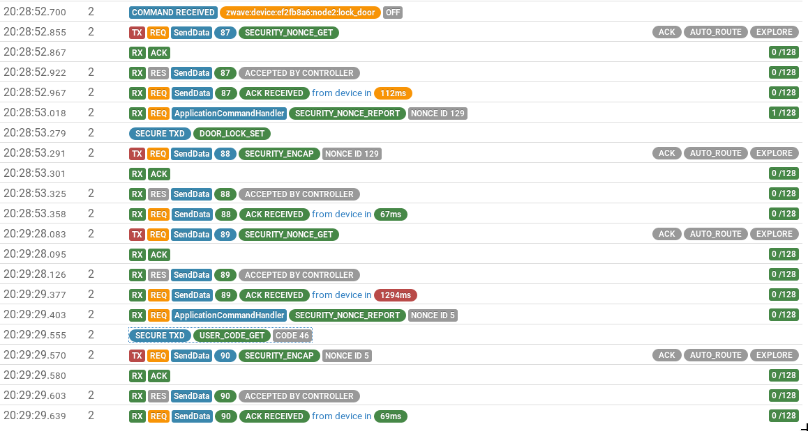 But there are some USER_CODE_GETs, so it looks like the lock is not done initializing. Secure devices will take a while, especially locks that have a lot of user code slots. Until it is done initializing, there won’t be a handler assigned to the channels. Try giving it some more time to complete. I’m 90% sure I have this right… Chris will know best!