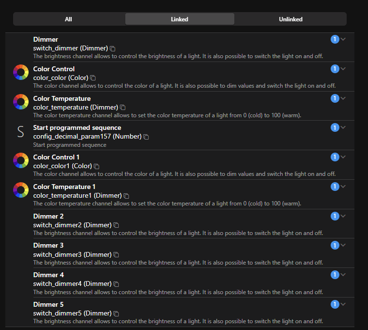 What is the different between color and color1, dimmmer, dimmer1?