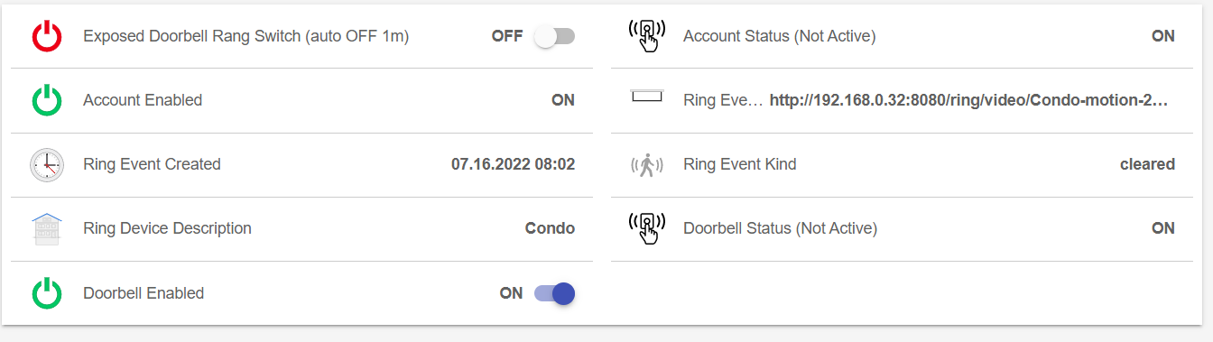 Here’s my rule for the ring doorbell, there is a 2 minute delay for OH to see the changes from the RING API. My rule integrates the IP Camera binding also to capture a image. This rule is actually tied to 2 different doorbells in two different locations.