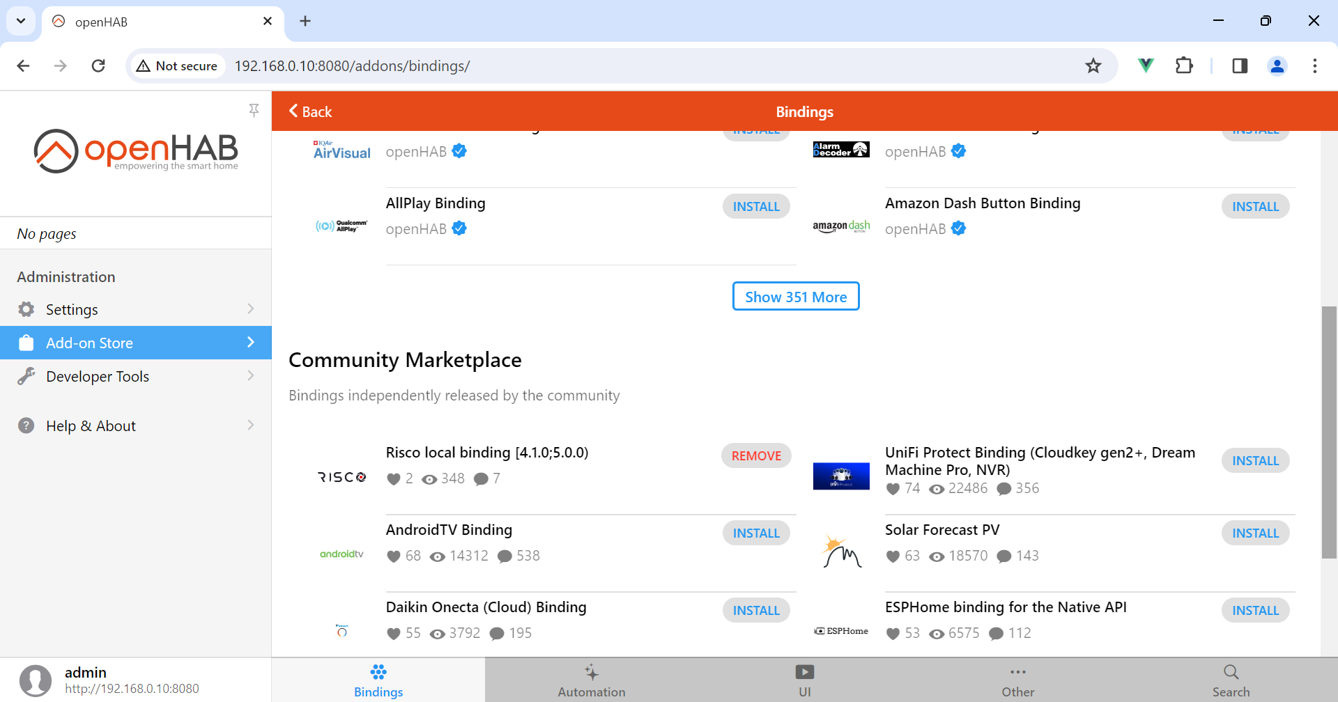 2024-02-18 13:37:26.013 [DEBUG] [internal.handler.RiscoHandlerFactory] - bundle org.openhab.binding.risco:4.1.0.202310291653 (280)[org.openhab.binding.risco.internal.handler.RiscoHandlerFactory(380)] : Changed state from satisfied to active