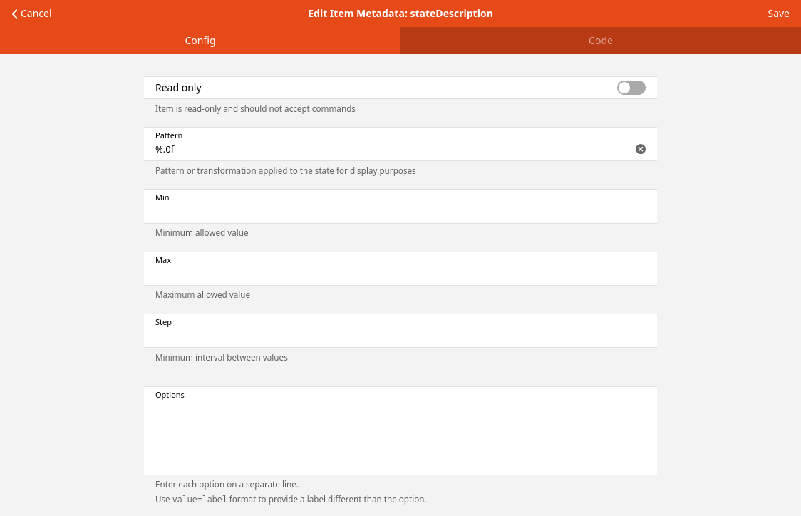 Note, when configuring a widget, the displayState is the formatted/transformed state of the Item but the state is the raw unmodified state of the Item.