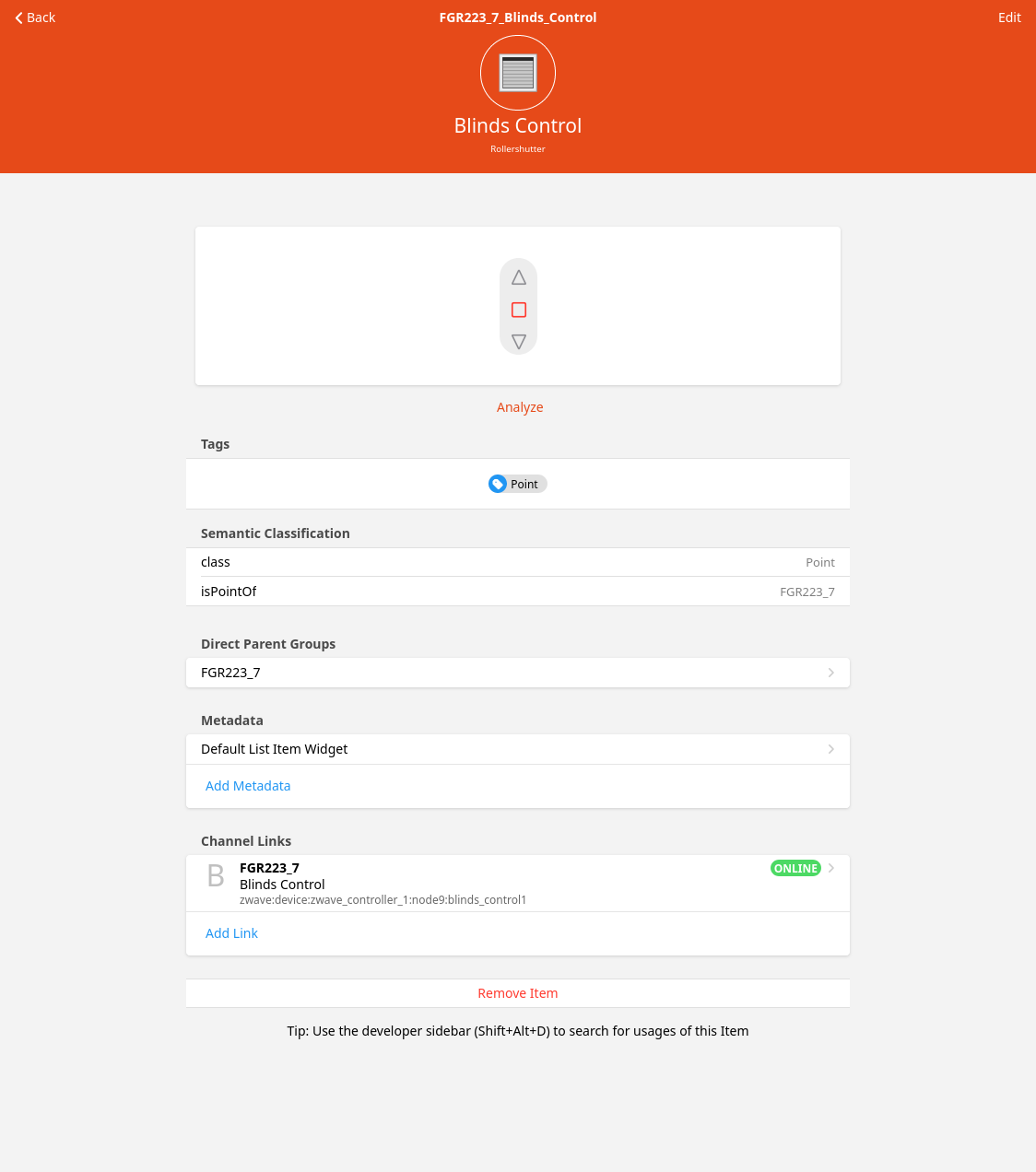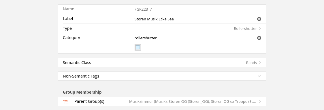 So, I have the FGR223_7_Blinds_Control of type Rollershutter, which is part of FGR223_7 of type Rollershutter, which is part of several groups, e.g. Storen_OG_Musik of type Group with Group Settings: Members Base Type: Rollershutter. Is this correct?
