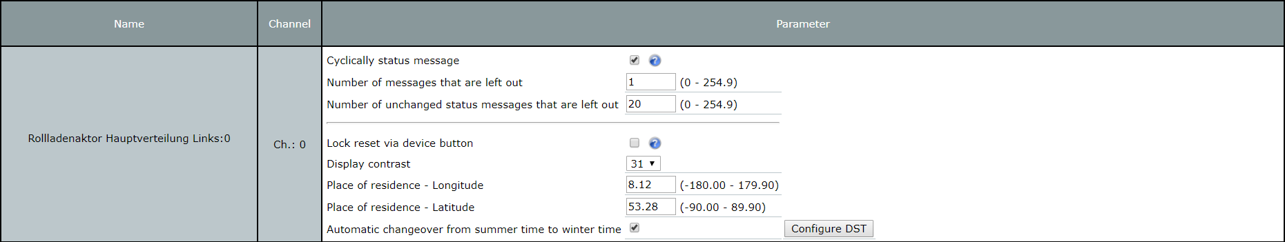 The Thing in openHAB has many configuration parameters in the thing configuration itself. There you can found the settings from the Homematic channel 0 but more setting for channels 1 to 17. I did not change any of those.