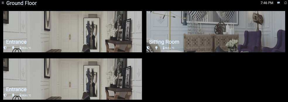 Allows me to configure four items for display (no control though), together with a redirect to a dashboard when you click on the image. In my case, this will be a detailed page for that room.