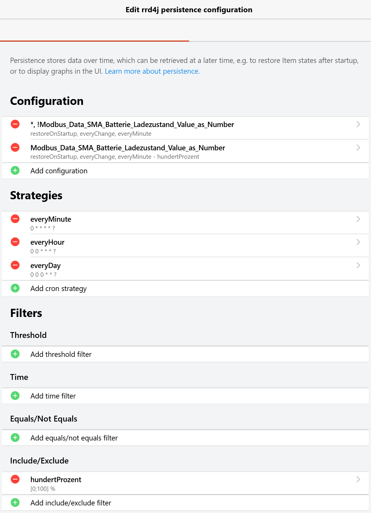 Example: i sometimes had 4E9 as value for my PV battery SoC which can only vary between 0% and 100%. It came from my PV inverter, always in the night, and i used the RRD file inspector to edit and eliminate such values. Got rid of this now by setting a range between 0…100% within the persistence policies.