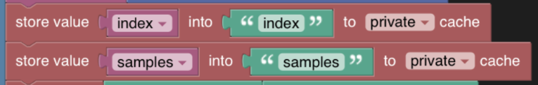 You haven’t corrected the problem. The block still says “store value samples into index to private cache” in the screenshot of the blocks. The key we store the samples under in the cache needs to be “samples”, not “index”.