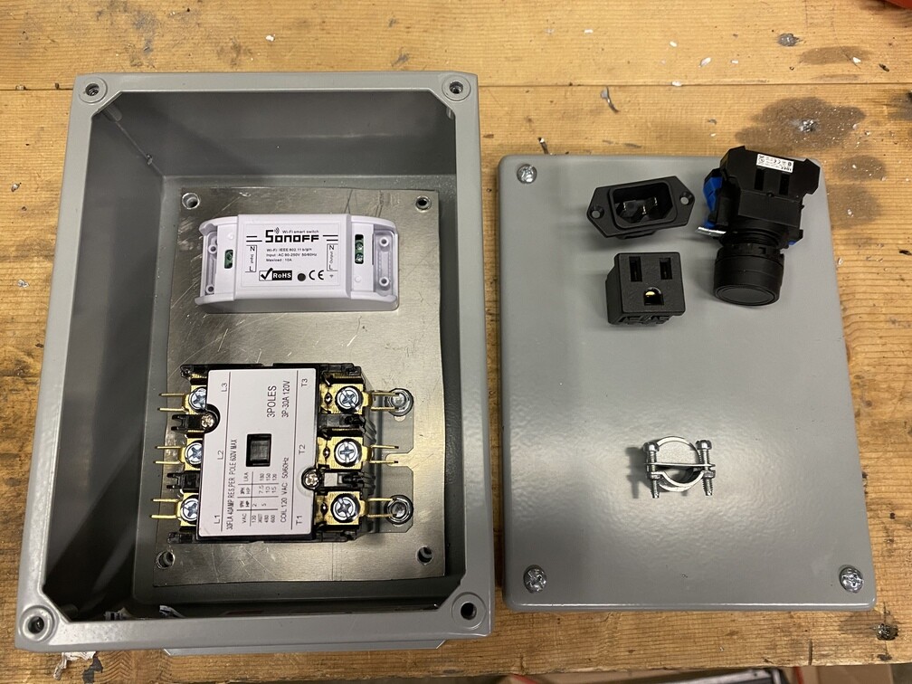 I’m building one with a Sonoff and a 40A contactor. Then I can run Tasmota. Extending the button and LEDs to outside the enclosure.