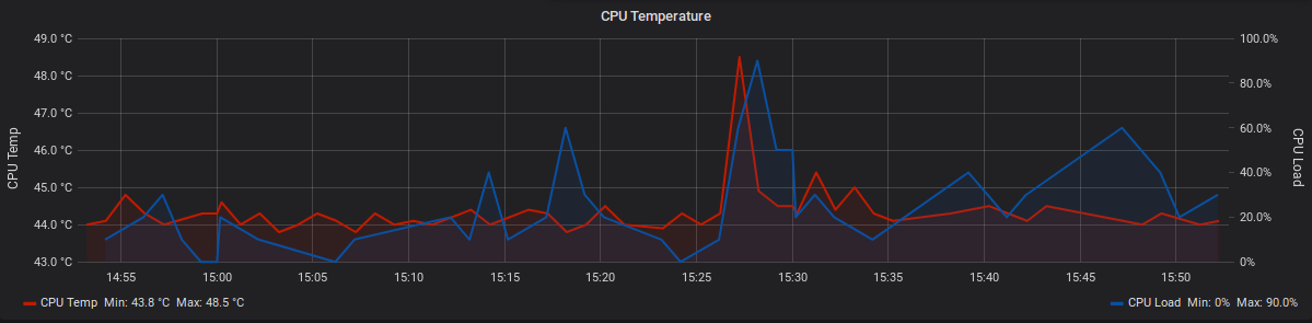 Is it possible to create a chart which has a primary and secondary Y-axis and a common X-axis? I would like to show both temperature and humidity (from a DHT22 sensor) on one chart. Here are my relevant items: