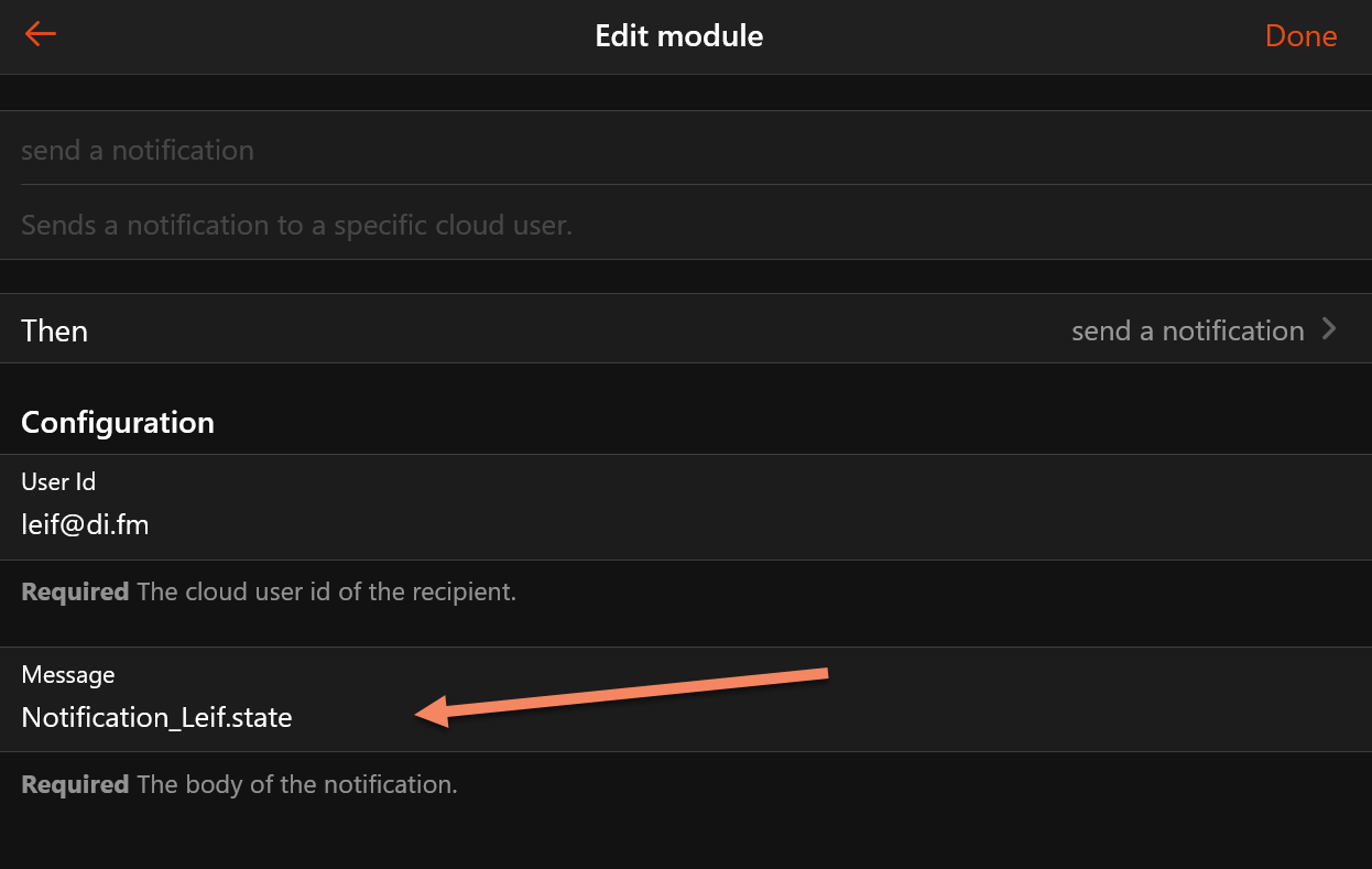 I’m able to send notifications to my phone (OpenHAB app) from a UI defined rule, but I can’t figure out how include the item state in the body of the message!