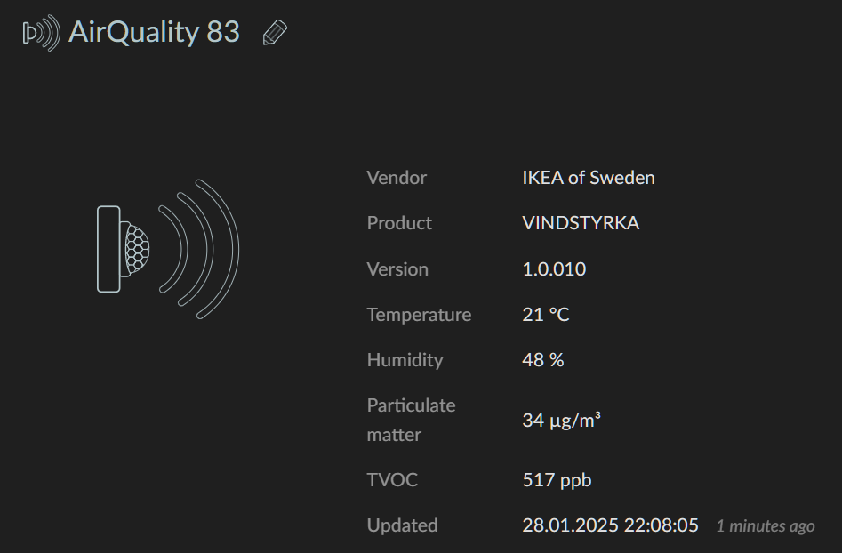 Just added an Ikea Vindstyrka Air Quality sensor in DeConz: