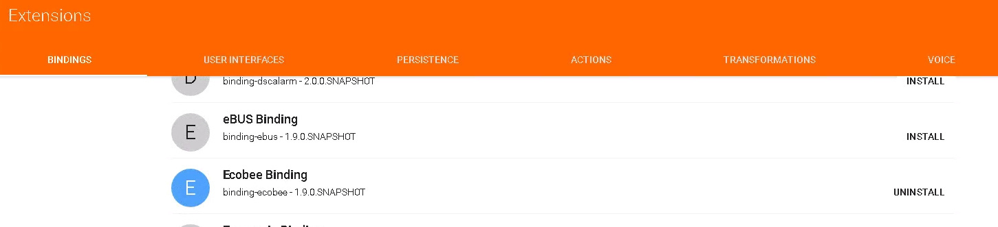 Hi Tom, you don’t need to handle JAR files directly. Installing a binding and action via the Paper UI is enough. In the case of a 1.x binding, you will have to edit text files to create and bind items, and then use a sitemap text file to see the items in a client like the Basic or Classic UI (or some other UIs). You can use the ecobee remote sensors in UIs and in rules by using the items you’ve bound above.