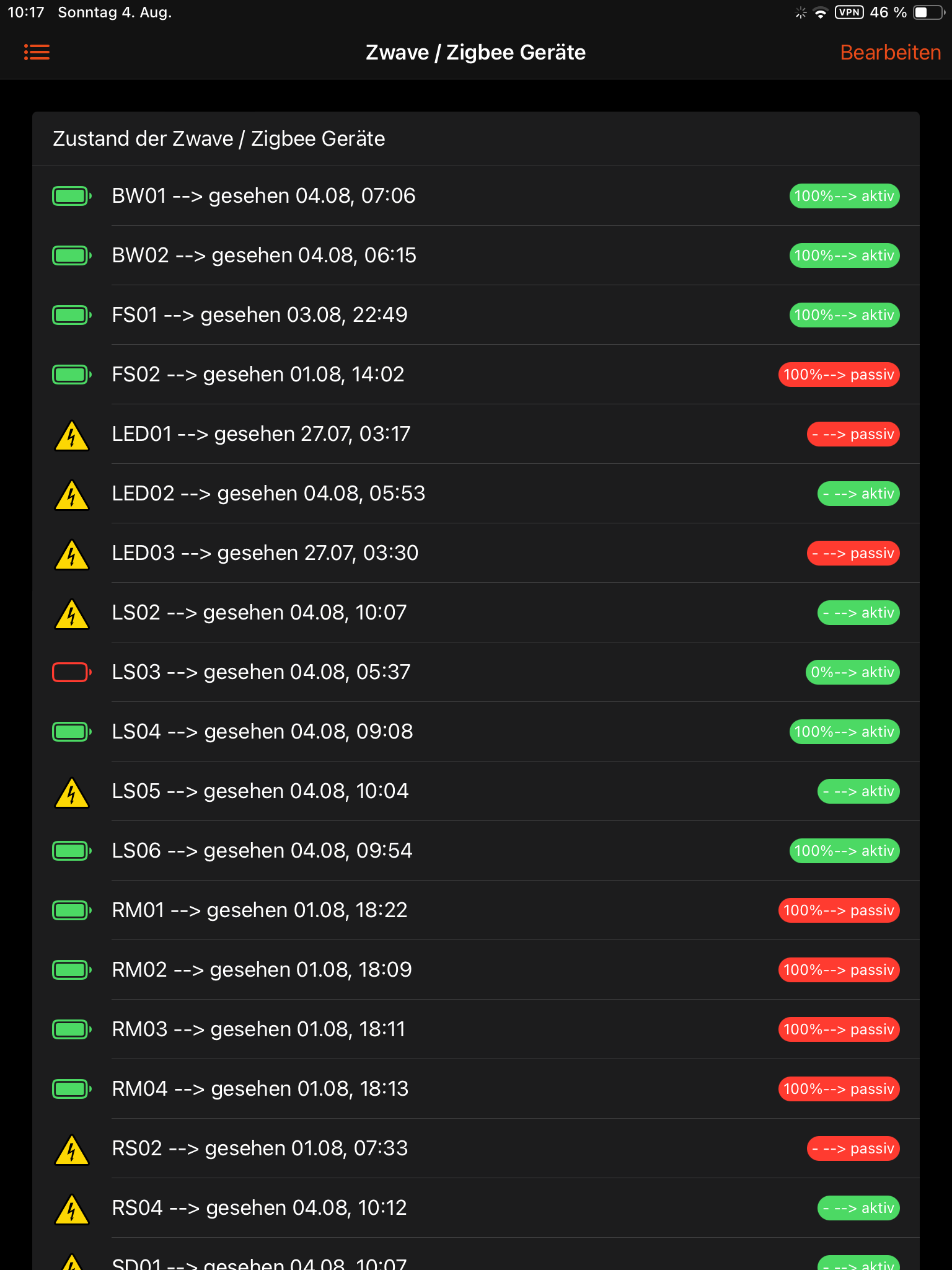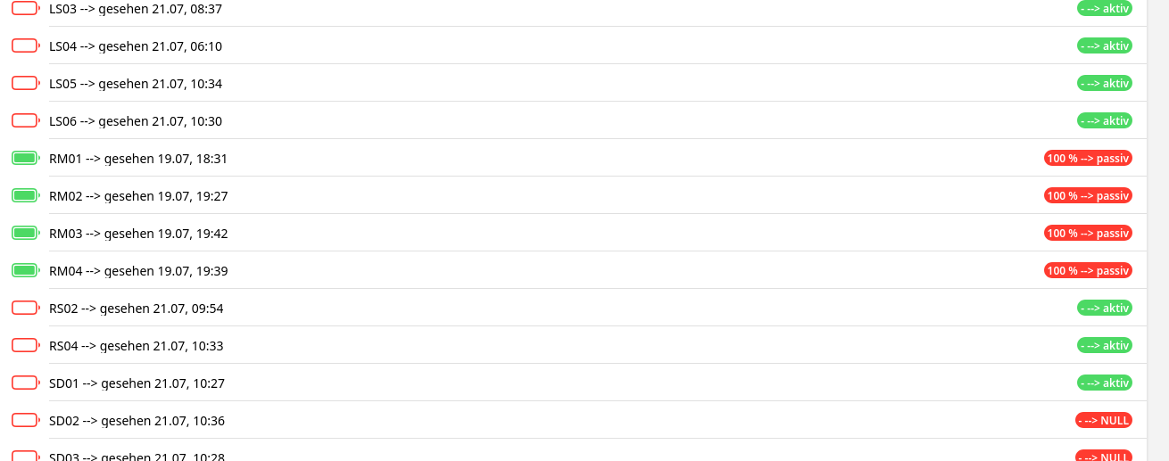 Every device has items like ‘AAnn_LifeCheck’ or ‘AAnn_BatterieLadung’ etc , where AA is like ‘FS’ (Fenster (window)sensor or ‘LED’ (then three letters) and nn counts up from 01 to 09 for every device.