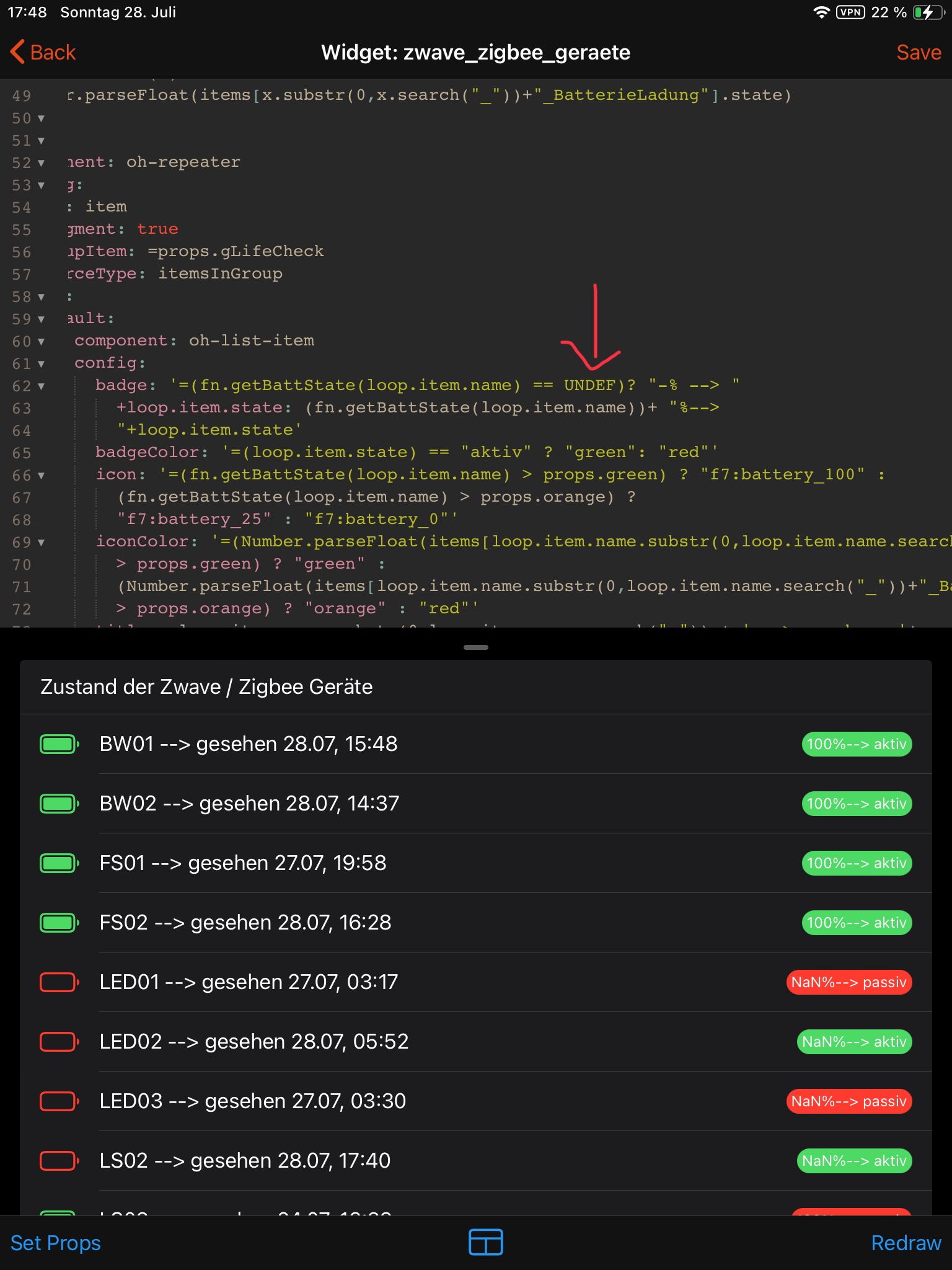I tried to maximise the information in an oh:list widget to show the conditions of all zwave and zigbee devices (battery level, and last seen).