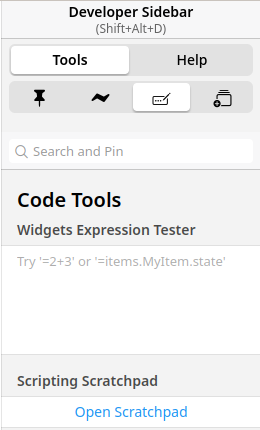 This is where the widget expression tester is very helpful. If you open up the developer side bar (press the ? button at the top or press shift + alt + d) and go to Tools and the third tool button you will get this: