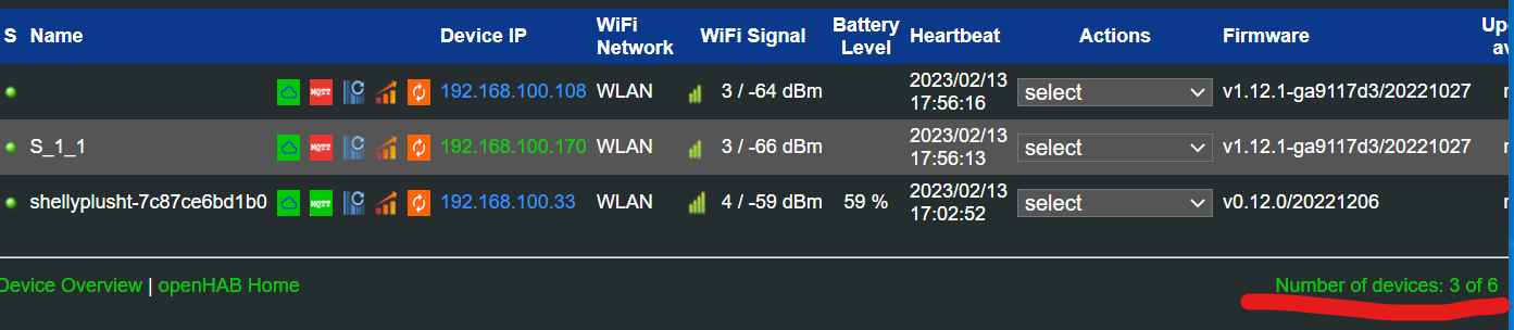 I have 6 Shellys that were set up via text files and also work. When the manager is opened it says there are 6 devices but only shows 3.
