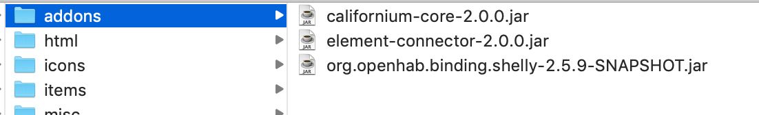 I put all three jar files in the addons folder but I don’t see any of them under “bundle:list”. Sorry, but I’ve never installed or used a DEV or SNAPSHOT binding