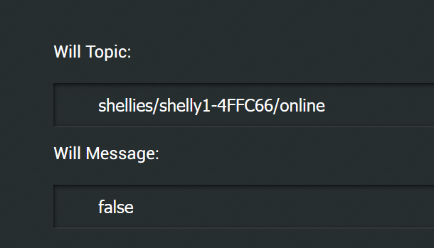 Just checked mine from the phone and it shows the same message in the “Will Topic”, but that doesn’t change regardless of if I turn the Shelly off via the Shelly web app or OH switch.