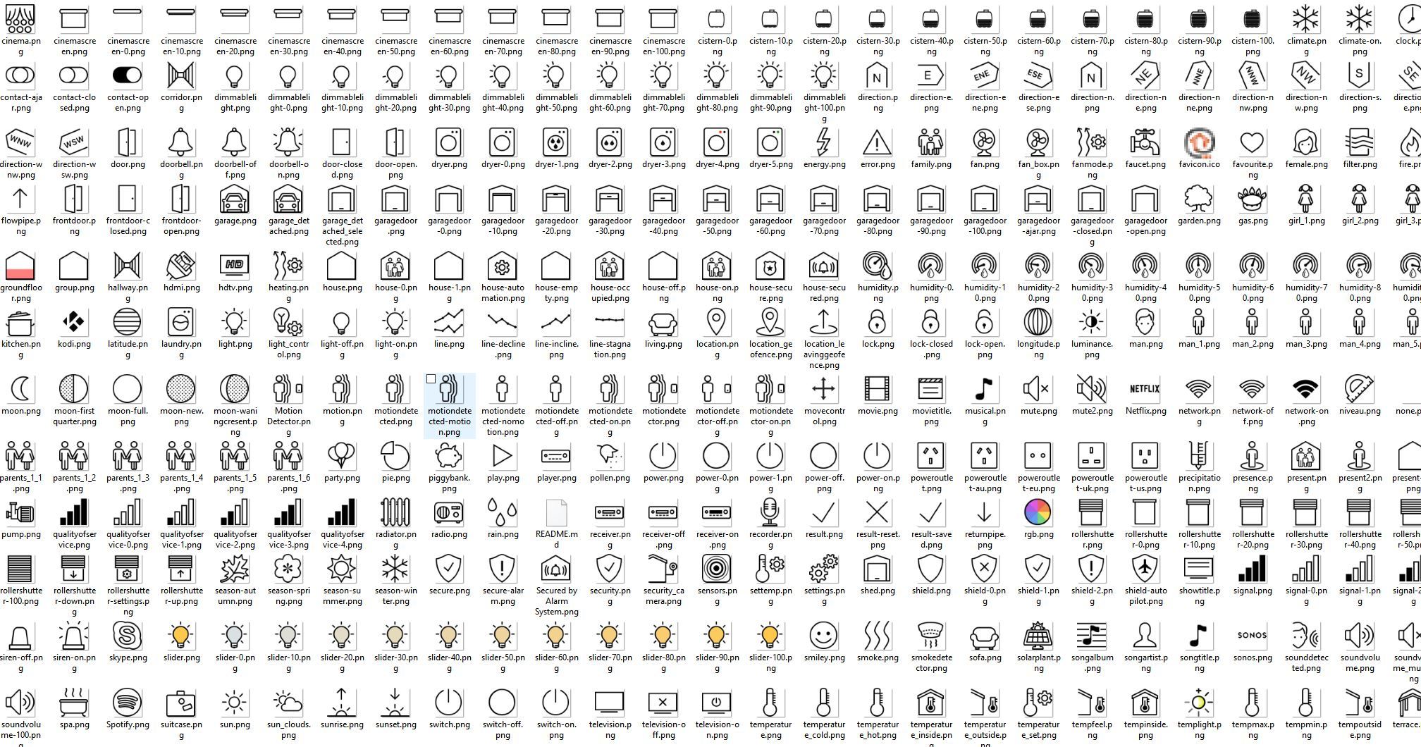 Originally they were pretty haphazard in naming convention, but i’ve since tinkered with this and they should now replace almost all of the main OH iconset if you want to use them. They’re .png format and at this stage I have no intention of creating svg’s sorry