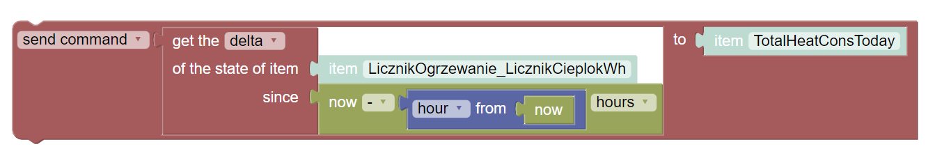 Item state is the reading from my water and heat energy meter, so each time water or heat is used the value of usage is added to the total item state. I was looking on those persistence blocks and maybe this is solution: