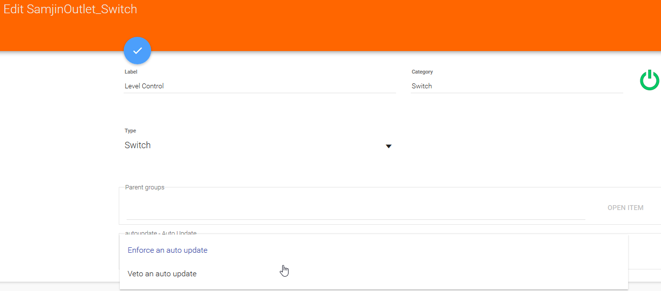 If I set it to “Veto an auto update” I can’t get the item state (edit: better said, the item state does not update) so if I set up a switch in habpanel it will never turn on… its in a constant OFF state. “Enforce an auto update” is the default I think because it just flips the item off whenever it polls.