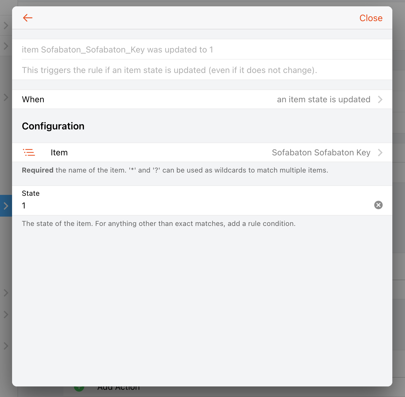8) Create a rule to manage your Sofabaton commands
