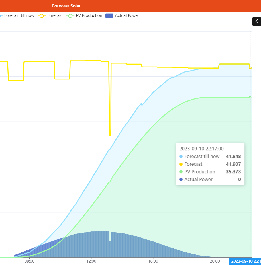 I’m doing something simlar and in principle Forecast.Solar is a bit optimistic on “clear days” with bright sunshine. But it just looks as shifted - blue line forecast, green line real energy production