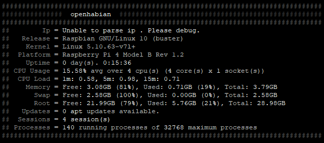 The first screenshot states ‘Unable to parse IP . Please debug’ Hence, try to login on your OpenHAB server and ensure it is getting a proper IP Address.