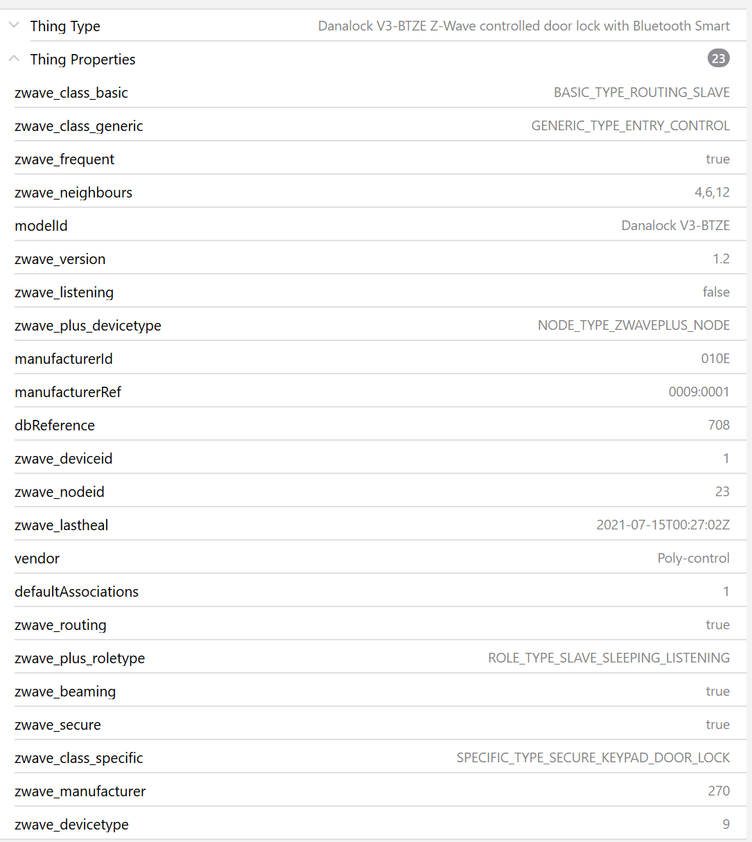Removed the lock from controller, deleted thing, uninstalled zwave, stopped OH, used Silicon Labs Simplicity Studio to delete the danalock completely from the stick (including an old device not being used anymore), then re-included it securely. Because it was recognized as a new node I don’t expect a conflict with the old node19.xml.