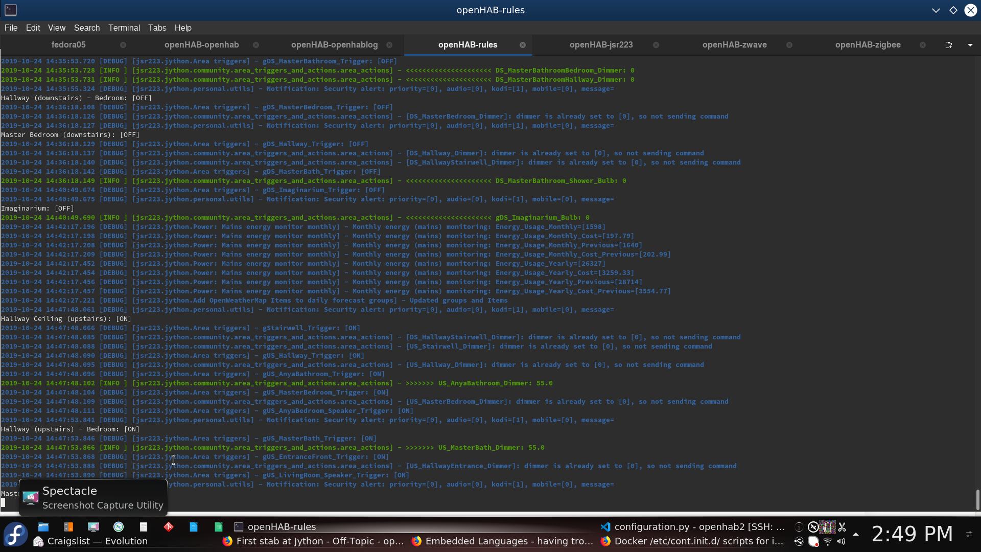 2019-10-24 19:09:01.448 [DEBUG] [jsr223.jython.Area triggers ] - gOutside_Trigger: [ON]