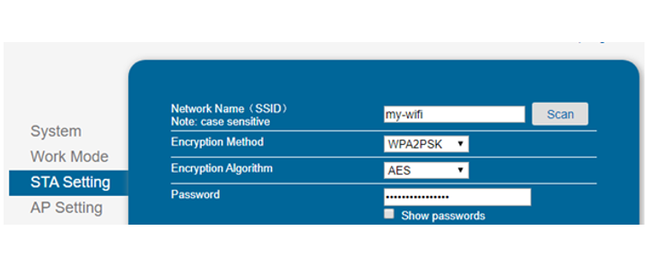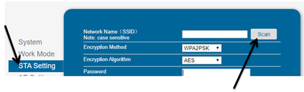 a. go to “STA Setting”, scan and choose your local wifi