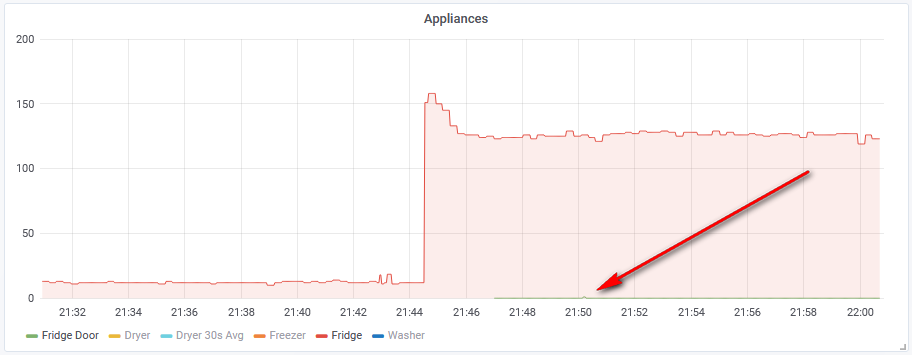 I’m using Grafana and I can see in the InfluxDB that the door contact changes to 1 when open and so it’s purely an issue with the scales… You can actually see the little blip on the chart when the door was opened and closed.