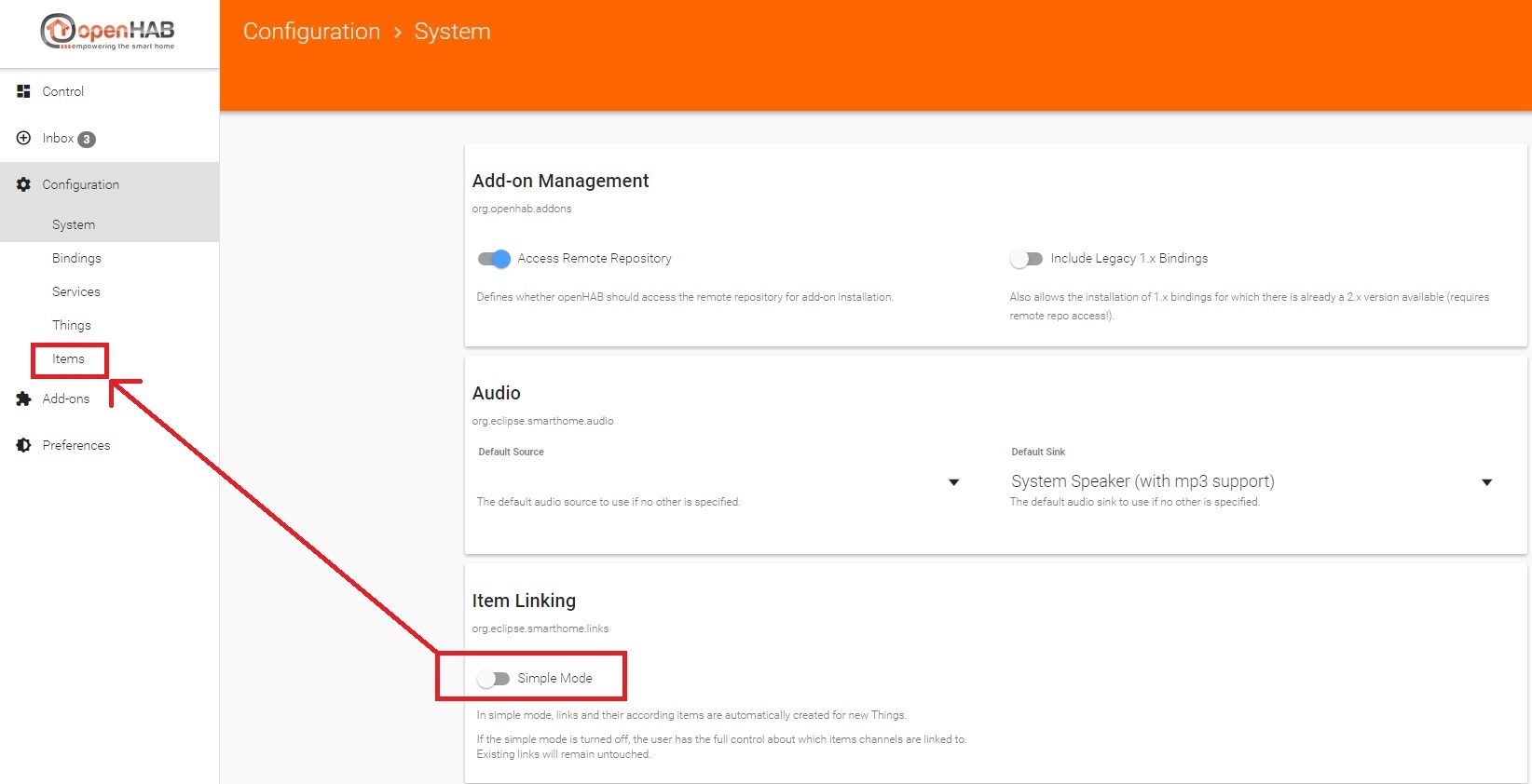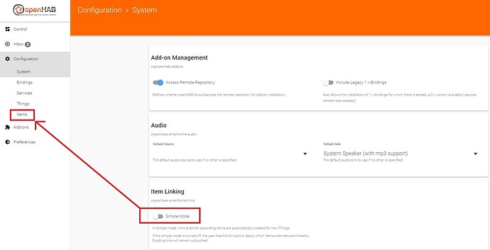 I started it en demo mode, but in Paper UI I don’t see the items menu under configuration, can somebody tel me how to find it?