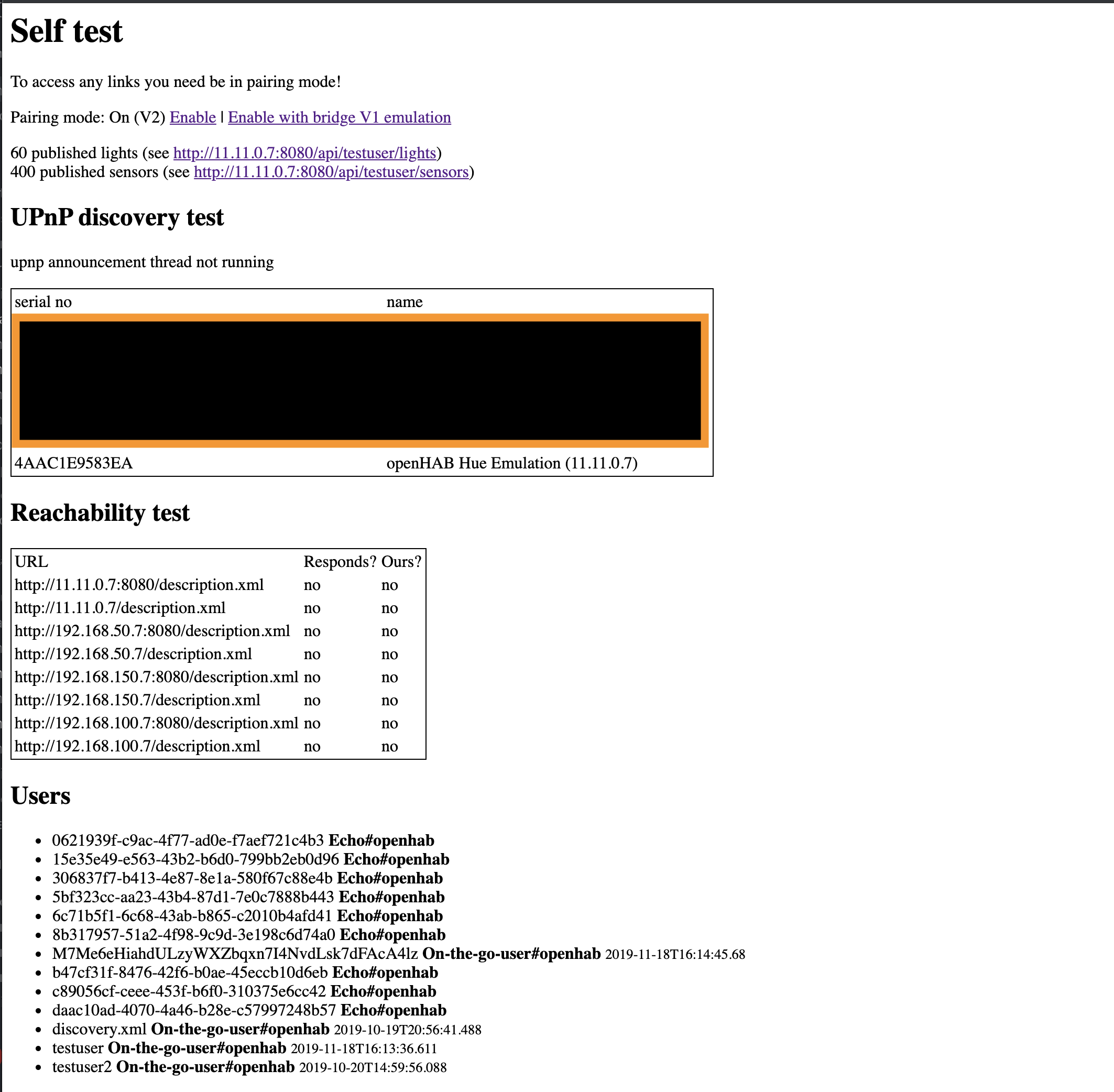 After increasing the debugging logs, I don’t see any self test failure or any other errors that would explain the reason for my issue. So I assume the self tests aren’t failing but they somehow end up being considered as unresponsive. The fact that the self test page is showing the upnp announcement thread not running is probably the resulting issue here. Just to be sure, I tried to remove the hue configuration from my Harmony Hub setup but wasn’t able to pair against after that.
