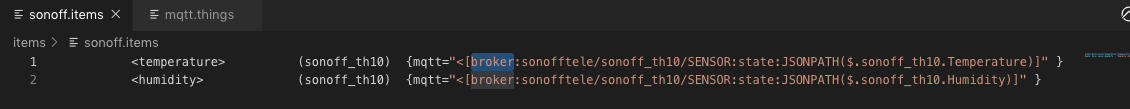 In your Items; ... { mqtt="<[ ...