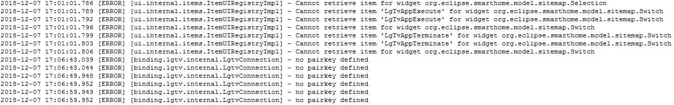 Checking openhab log I can see the following errors. How do I get per key ?