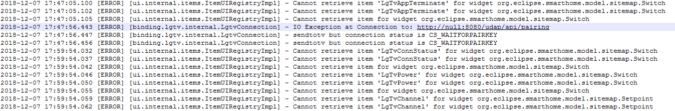 On openhab app I can`t see any items listed under TV, there is only empty “TV” frame. Not sure exactly where this problem is lying, checking syntax everything appears to be correct.