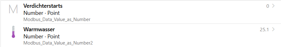 2019-11-11 12:06:02.682 [DEBUG] [ernal.handler.ModbusDataThingHandler] - Thing modbus:data:holzheizung:holding:holding210 channels updated: {modbus:data:holzheizung:holding:holding210:string=0, modbus:data:holzheizung:holding:holding210:number=0}. readValueType=int16, readIndex=Optional[210], readSubIndex(or 0)=0, extractIndex=0 -> numeric value 0 and boolValue=false. Registers RegisterArrayWrappingInputRegister(00 00 01 e3) for request ModbusPollerThingHandlerImpl.ModbusPollerReadRequest@7c4da78f[slaveId=0,functionCode=READ_MULTIPLE_REGISTERS,start=210,length=2,maxTries=3]