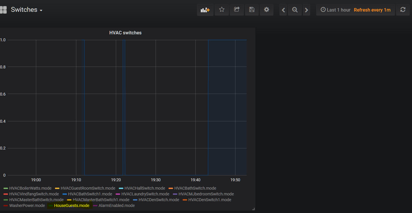 I had my system up and running for over a year without persistence and quite recently added influxdb and Grafana. Mainly for generating graphs, but now when I’m introducing two new operating states HouseGuest and Alarm (any motion sends me a FB chat message) I wanted to persist and restore those 2.