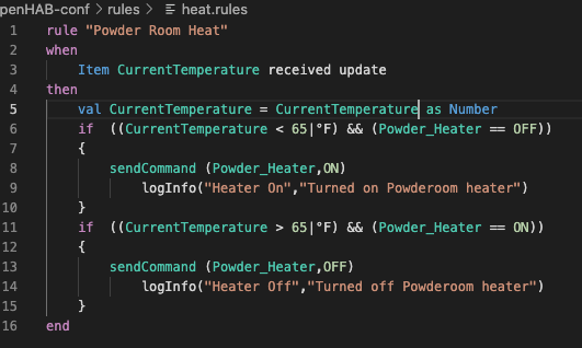 if ( (CurrentTemperature.state < 65|°F) && (Powder_Heater.state == OFF) ) {