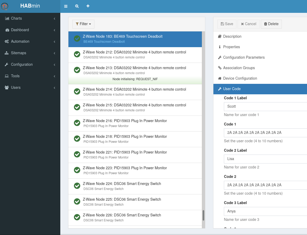 @5iver so that’s where I looked in HABmin but figured I was missing something. Is it supposed to come as channels for user codes? I see 3 channels and nothing on user codes in there. Yours looks like that?